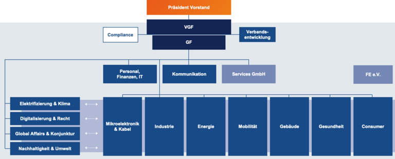 Im Vorstand sind alle Vorsitzenden der 23 Fachverbände und der neun Landesstellen des ZVEI qua Amt vertreten. Der Vorstand verabschiedet unter anderem den Jahresabschluss und den Haushaltsplan und wählt aus seiner Mitte den Präsidenten, bis zu fünf Vizepräsidenten und weitere Mitglieder des engeren Vorstands.