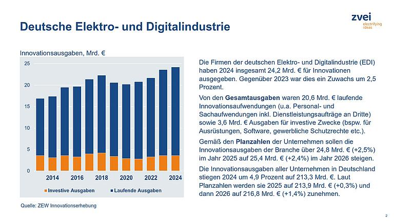 Die Publikation stellt die Innovationskraft der deutschen Elektro- und Digitalindustrie (EDI) anhand von Kennziffern zum Innovationsverhalten (Innovationsaufwendungen, Innovationsintensität, Innovatorenquote, Umsatz mit neuen Produkten) dar.