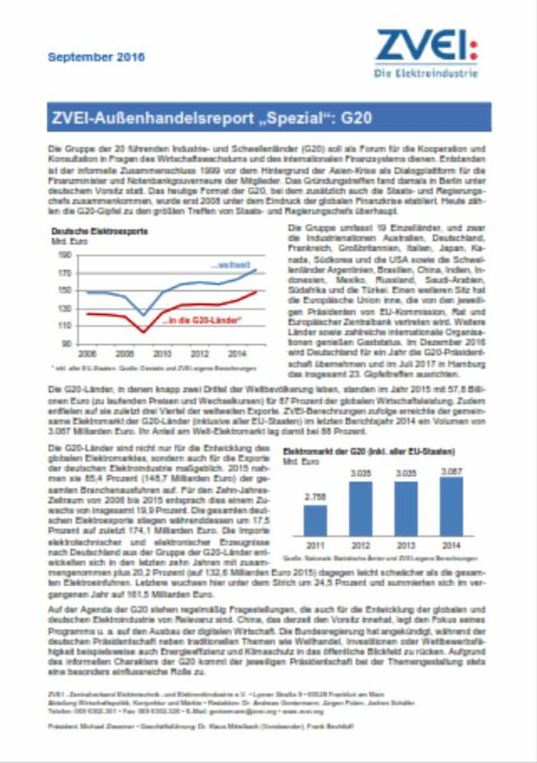 ZVEI-Außenhandelsreport „Spezial“: G20
