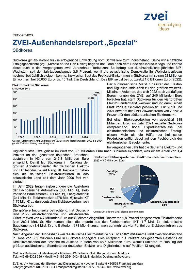 In unregelmäßigen Abständen informiert der ZVEI mit einem Außenhandelsreport "Spezial" über ausgewählte Länder und Regionen.