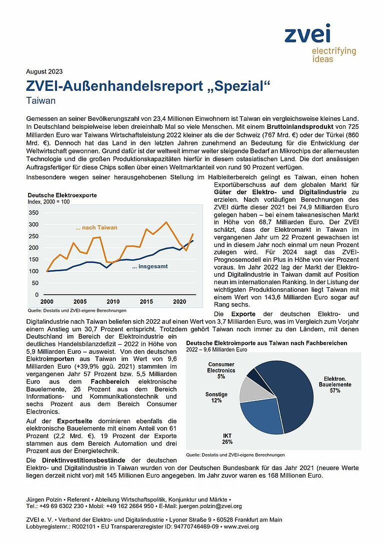 In unregelmäßigen Abständen informiert der ZVEI mit einem Außenhandelsreport "Spezial" über ausgewählte Länder und Regionen.