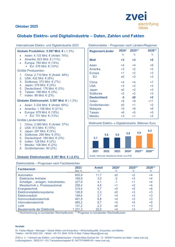 Mehr erfahren31.10.2025 | Allgemein, Reihe: ZVEI-Welt-Elektromarkt, Themen, Konjunktur & Märkte