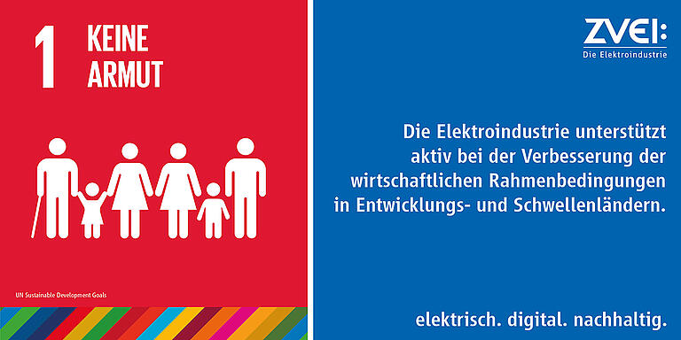Das Leitbild der Nachhaltigkeit setzt sich zusammen aus einer sozialen, einer wirtschaftlichen und einer ökologischen Dimension und ist sowohl auf die Gegenwart als auch auf die Zukunft ausgerichtet. 2015 haben die Vereinten Nationen im Rahmen der „Agenda 2030“ siebzehn globale Nachhaltigkeitsziele – die Sustainable Development Goals (SDGs) – formuliert. Sie prägen seitdem die Nachhaltigkeitsdebatte und bieten als globaler Handlungs- und Orientierungsrahmen eine Richtungsweisung für die Herausforderungen des 21. Jahrhunderts – auch für die Elektro- und Digitalindustrie. Mit welchen Lösungen kann unsere Branche einen Beitrag leisten, wo liegen Möglichkeiten für Synergien, wo gibt es aber auch Zielkonflikte? Das stellen wir hier vor:
