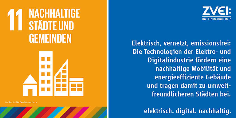 Die Urbanisierung gehört zu den bedeutendsten Entwicklungen des 21. Jahrhunderts. Städte sind Treiber von Wirtschaftsaktivitäten, bringen durch die Urbanisierung aber auch große Herausforderungen mit sich. Nachhaltige Gebäude und Mobilität spielen eine große Rolle bei der Erreichung der Ziele des SDG 11. Für die Elektro- und Digitalindustrie ergeben sich hier zahlreiche Anknüpfungspunkte.