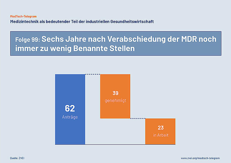 Die Versorgung mit Medizinprodukten in der EU kann erst dauerhaft sichergestellt werden, wenn alle 62 Benannten Stellen bei NANDO gelistet sind. Erst dann hat die Zahl der Benannten Stellen für die MDR wieder das Niveau der Benannten Stellen für die früher geltende MDD erreicht.