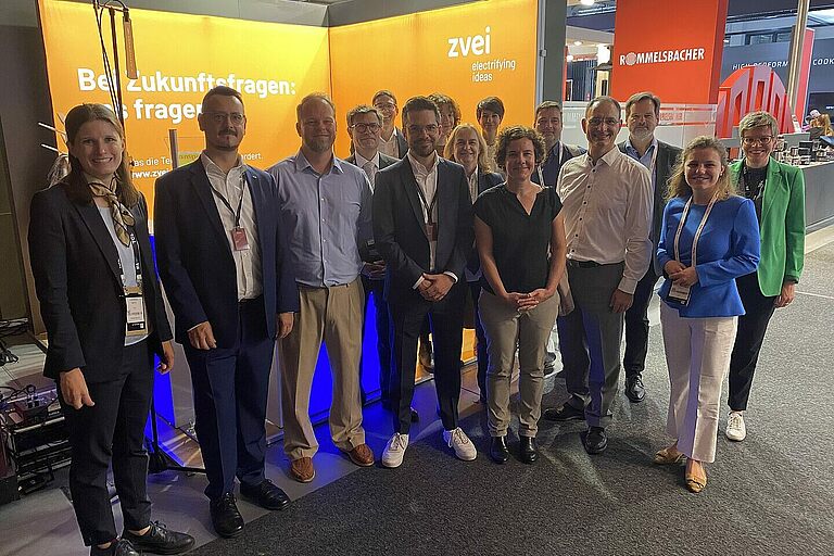 Ein Höhepunkt der Messe war der vom ZVEI organisierte Behördenrundgang. Dabei besuchten Vertreterinnen und Vertreter verschiedener Bundesministerien mehrere ZVEI-Mitgliedsunternehmen und kamen mit den Herstellern ins Gespräch. Unter anderem wurde diskutiert, wie digitale Lösungen wie etwa die digitale Nutzerinformation dazu beitragen können, Nachhaltigkeit und Transparenz entlang des gesamten Produktlebenszyklus zu stärken. Themen wie Standortsicherheit und der Abbau von Bürokratie standen ebenfalls auf der Agenda.