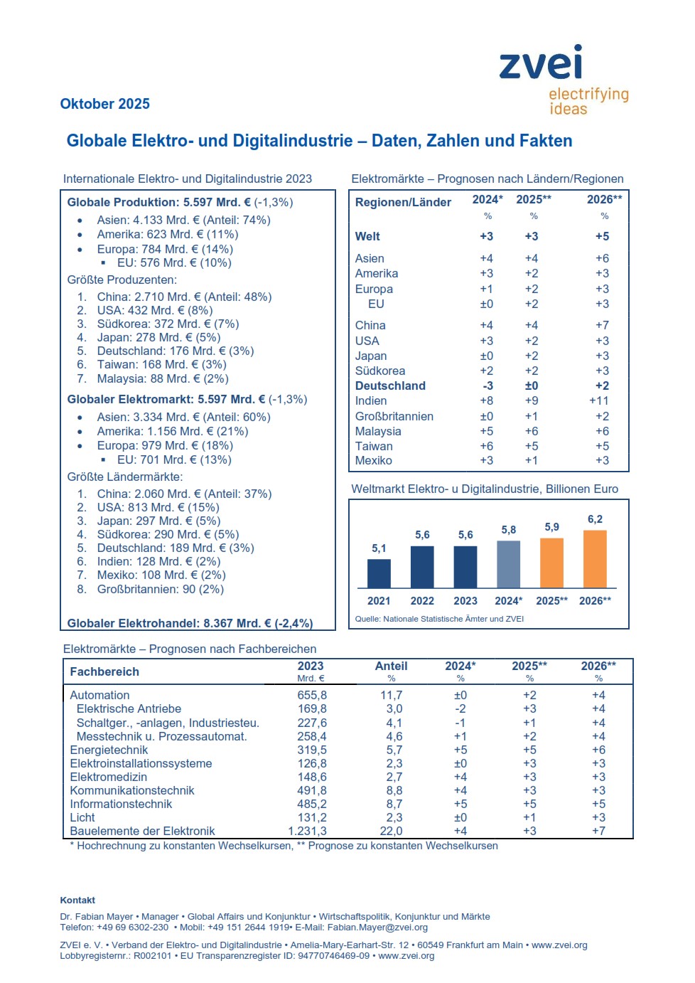31.10.2025 | Publikationen, Reihe: ZVEI-Welt-Elektromarkt, Themen, Konjunktur & Märkte, Märkte