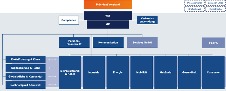 Im Vorstand sind alle Vorsitzenden der 23 Fachverbände und der neun Landesstellen des ZVEI qua Amt vertreten. Der Vorstand verabschiedet unter anderem den Jahresabschluss und den Haushaltsplan und wählt aus seiner Mitte den Präsidenten, bis zu fünf Vizepräsidenten und weitere Mitglieder des engeren Vorstands.