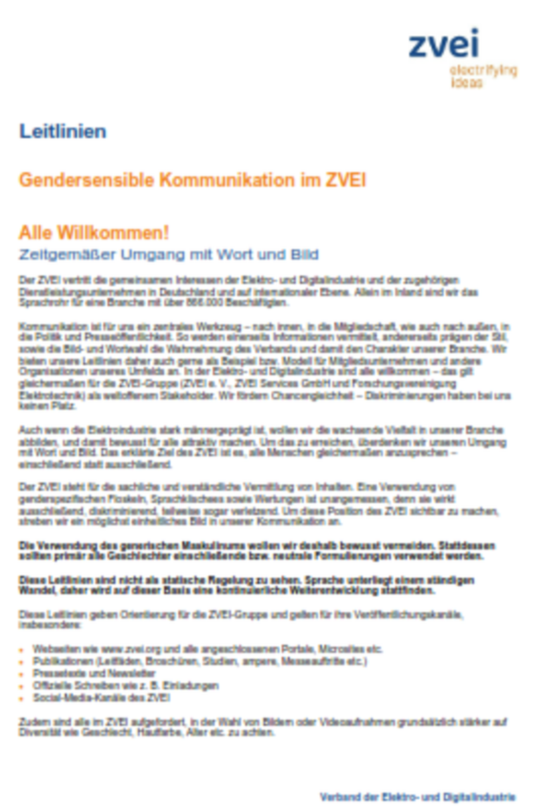 Leitlinien: Gendersensible Sprache im ZVEI